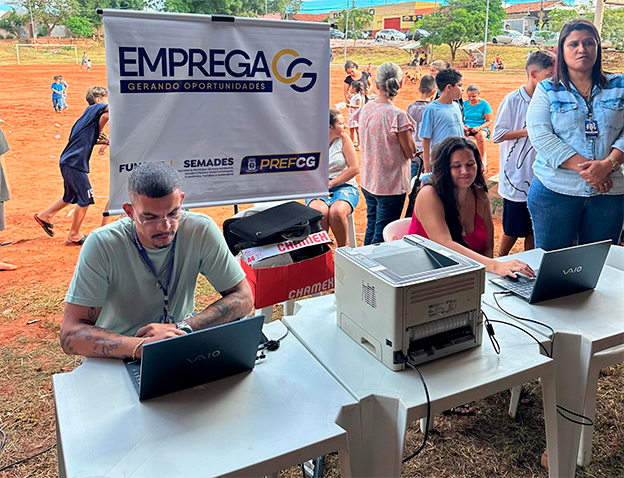A décima etapa do Emprega CG em 2025 ocorreu nesta quarta-feira (16), com duas abordagens. No prédio da Funsat (Fundação Social do Trabalho), no 2º andar, recrutadores da unidade de Campo Grande da Coca-Cola Femsa deram início a uma seleção para contratação de seis vendedores externos. Enquanto isso, ao lado da USF (Unidade de Saúde da Família) Dr. João Miguel Basmage, uma estação de atendimento da Funsat levou aos moradores do Estrela Dalva a intermediação do dia.