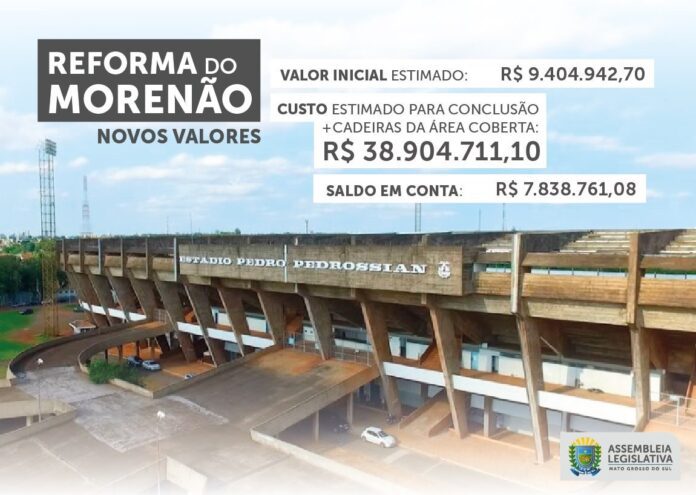A audiência pública para discutir as obras, a reforma e a transferência do Estádio Morenão ao Governo do Estado será na terça-feira (17), a partir das 14h, no plenarinho da Assembleia Legislativa de Mato Grosso do Sul (ALEMS). O debate é proposto pelo deputado Pedrossian Neto (PSD). Uma audiência já foi conduzida pelo deputado – reveja aqui – quem coordena uma comissão temporária para o acompanhamento das obras.