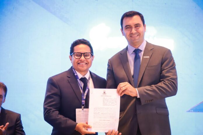 A Câmara Municipal de Campo Grande firmou, nesta terça-feira (9), durante o lançamento do SuperAMAS’25, no ExpoBosque, um Termo de Cooperação Técnica com a Associação Sul-Mato-Grossense de Supermercados (AMAS). Na mesma oportunidade, o vereador Carlão entregou a Medalha do Mérito Legislativo “José Antônio Pereira” ao presidente da AMAS, Denyson Prado, em alusão ao aniversário de Campo Grande, celebrado em 26 de agosto.
