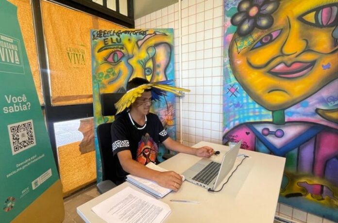 O Jovem bolsista do Programa Cidadania Viva da SETESCC (Secretaria de Estado de Turismo, Esporte, Cultura e Cidadania), Suélver Barros Benites, participou da oitiva sobre Educomunicação na mobilização do ambiente escolar. O evento realizado ontem (17) foi em favor da democracia e de uma cultura de paz, com o MEC (Ministério da Educação) promovida pelo ABPEducom e NCE-USP.
