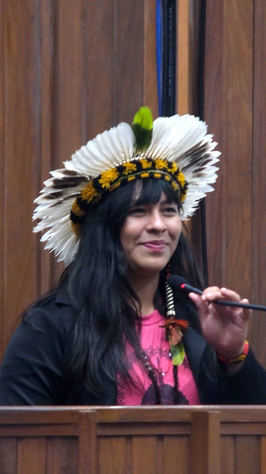 Aline também contou que, nesse trânsito em vários espaços, nesse passeio por várias culturas, os jovens de sua aldeia formaram um grupo de hip hop, o Brô MC’s. “É o primeiro grupo de hip hop dentro da aldeia onde moro [em Dourados]. Temos também companheiros de outros tekohas, palavra que quer dizer ‘território sagrado’; esses companheiros estão transitando na área do cinema, do teatro…”, informou. “Mas a burocracia nos deixa fora de todos os editais que vêm para apoiar a cultura”, reclamou. E finalizou dizendo que era importante falar na audiência, porque os indígenas têm sua própria voz: “A gente tem ocupado os espaços das universidades, da arte, da cultura, porque nós precisamos falar por nós. Chega de não indígenas falando pela gente. Por isso estamos ocupando espaços para falarmos por nós. E dentro de nossas tekohas, nossas comunidades esperam muito de nós que estamos aqui, que estamos ocupando esses espaços”.