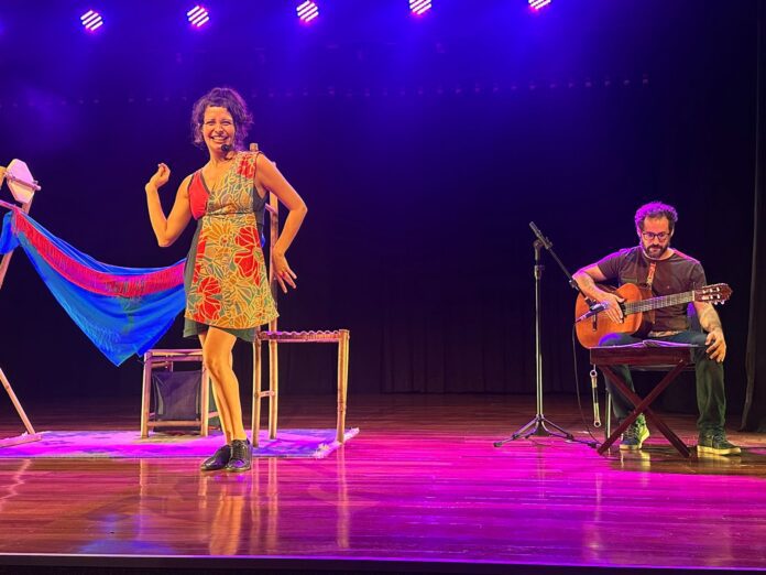 Liz Nátali Sória conta que escreveu a peça antes da pandemia e neste meio tempo mudou-se para Campo Grande, ocasião que teve que fazer uma adaptação. “Essa peça teve a dramaturgia escrita já há alguns anos, foi um pouco antes da pandemia e ao longo da pandemia que eu fui criando a história dessa menina com a intenção de que ela permeasse diferentes fases da vida, mas que pudesse dialogar com as crianças, com os jovens e também com os adultos, pensando justamente sobre esse espírito infantil ao longo da vida e dos espaços da nossa sociedade e muitas vezes eles são cerceados. É importante que a gente olhe para esse espírito para de alguma forma poder trazer inspiração e imaginação nos processos de transformações sociais. A dramaturgia foi criada juntamente com as músicas, cada cena tem uma expressividade musical, o Vitor Zan foi responsável por realizar os arranjos, tem duas músicas que têm arranjos do Cristiano Sória.. É uma peça que foi criada já há algum tempo e antes da pandemia eu vivia em São Paulo e essa peça ia ser montada com um um grupo e nesse meio tempo eu me mudei para Campo Grande, essas pessoas que eram do meu grupo montaram essa peça, só que eu adaptei para uma versão que estou só eu em cena, como narração”.
