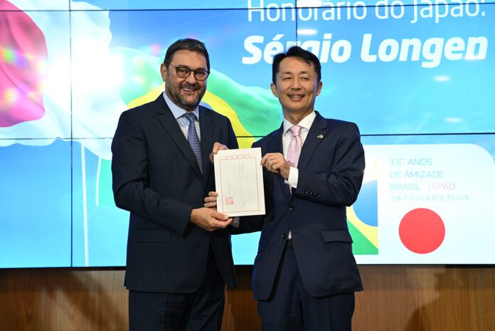 O presidente da Fiems, Sérgio Longen, foi nomeado, nesta sexta-feira (26/09), Cônsul Honorário do Japão em Campo Grande. Entregue em noite de festa, diretamente pelas mãos do embaixador do Japão no Brasil, Teiji Hayashi, a designação reconhece a trajetória de Longen como liderança empresarial e seu papel no fortalecimento das relações entre Mato Grosso do Sul e o país asiático. O título é o primeiro na história concedido a um sul-mato-grossense e é o terceiro vigente no Brasil.
